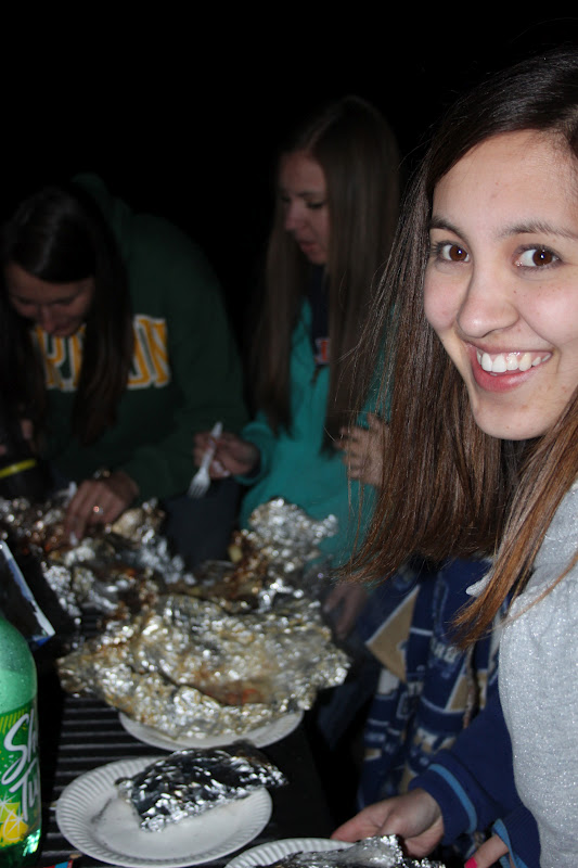 (these are the other two girls who had to share a sleeping bag...can you tell which one got the better sleep?)